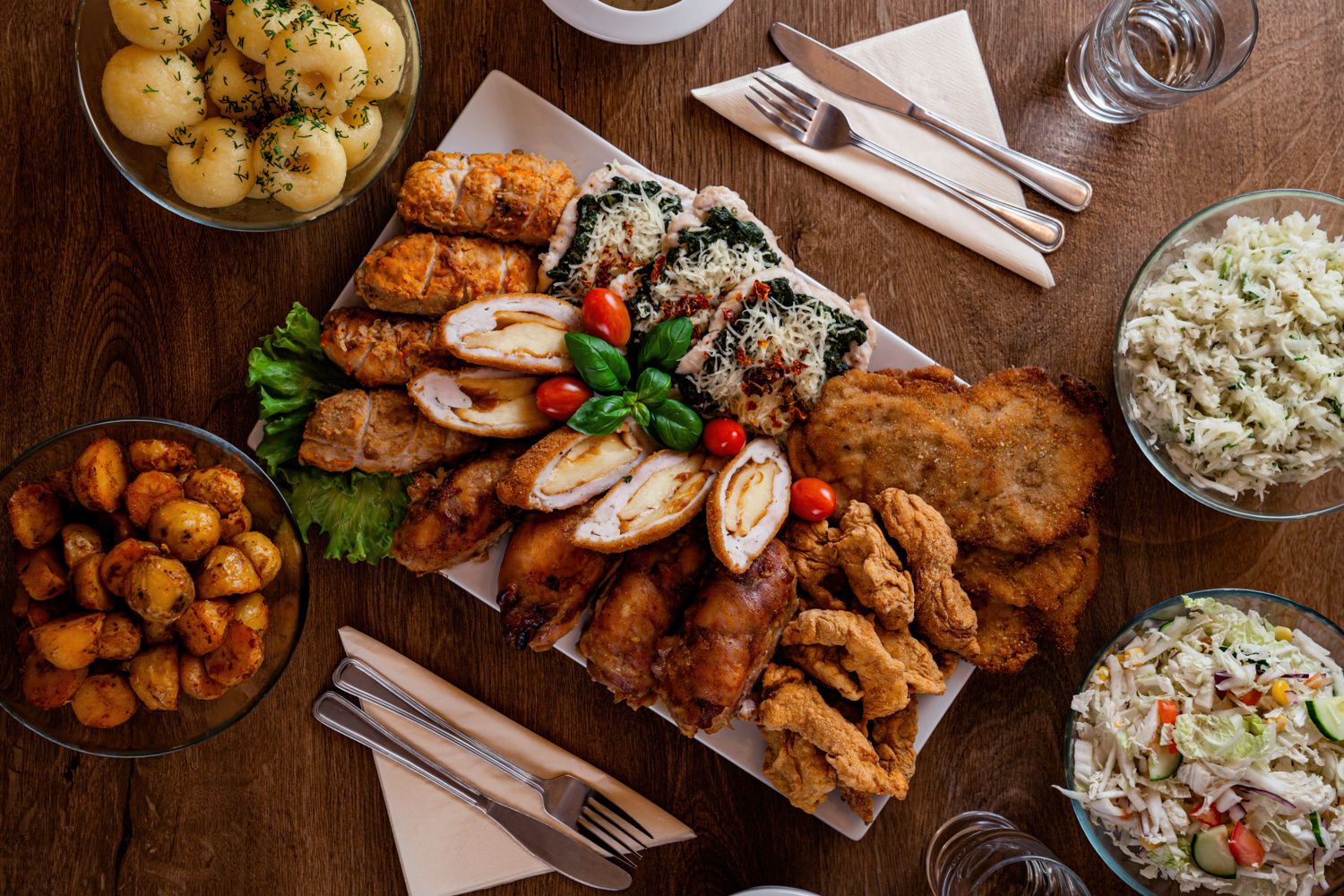 Oferta Cateringu Biały Młyn wyróżnia się solidnością, szacunkiem do tradycji i domowym sznytem. Porcje są sycące, smaki znajome, produkty świeże, dania estetycznie podane.