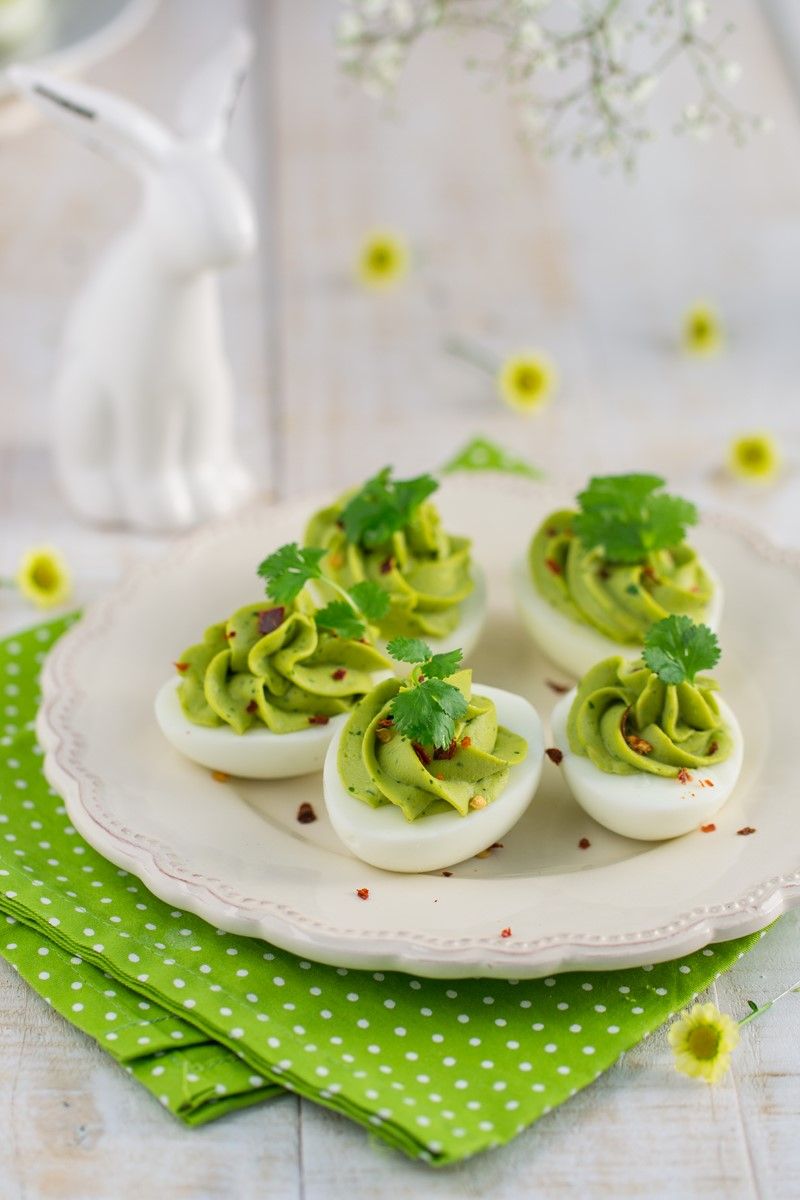 Jajka faszerowane pastami, łososiowa, bazyliowa z ogórkiem, z pieczonej papryki i orzechow, szynkowa – 6,00 zł (2 połówki)